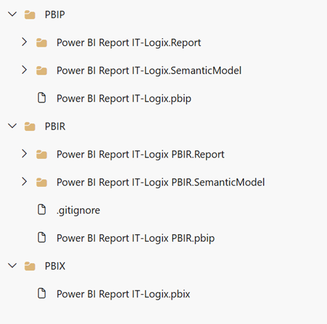 - PBIR ist sowohl für das Dateiformat .PBIP wie auch .PBIX verfügbar. Wird das .PBIX-File publiziert und Versionsverwaltet, wird auch dieses als Ordnerstruktur abgelegt.